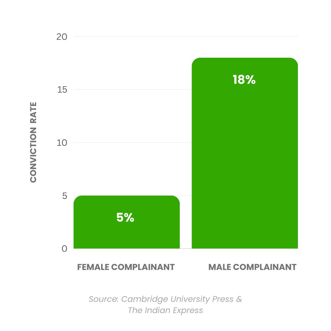 This contrast in conviction rates challenges the common belief that women misuse protective laws like the Domestic Violence Act and rape legislations, which require a reversed burden of proof, i.e. the accused person has to prove that they didn't commit the crime instead of the complainant proving what happened.